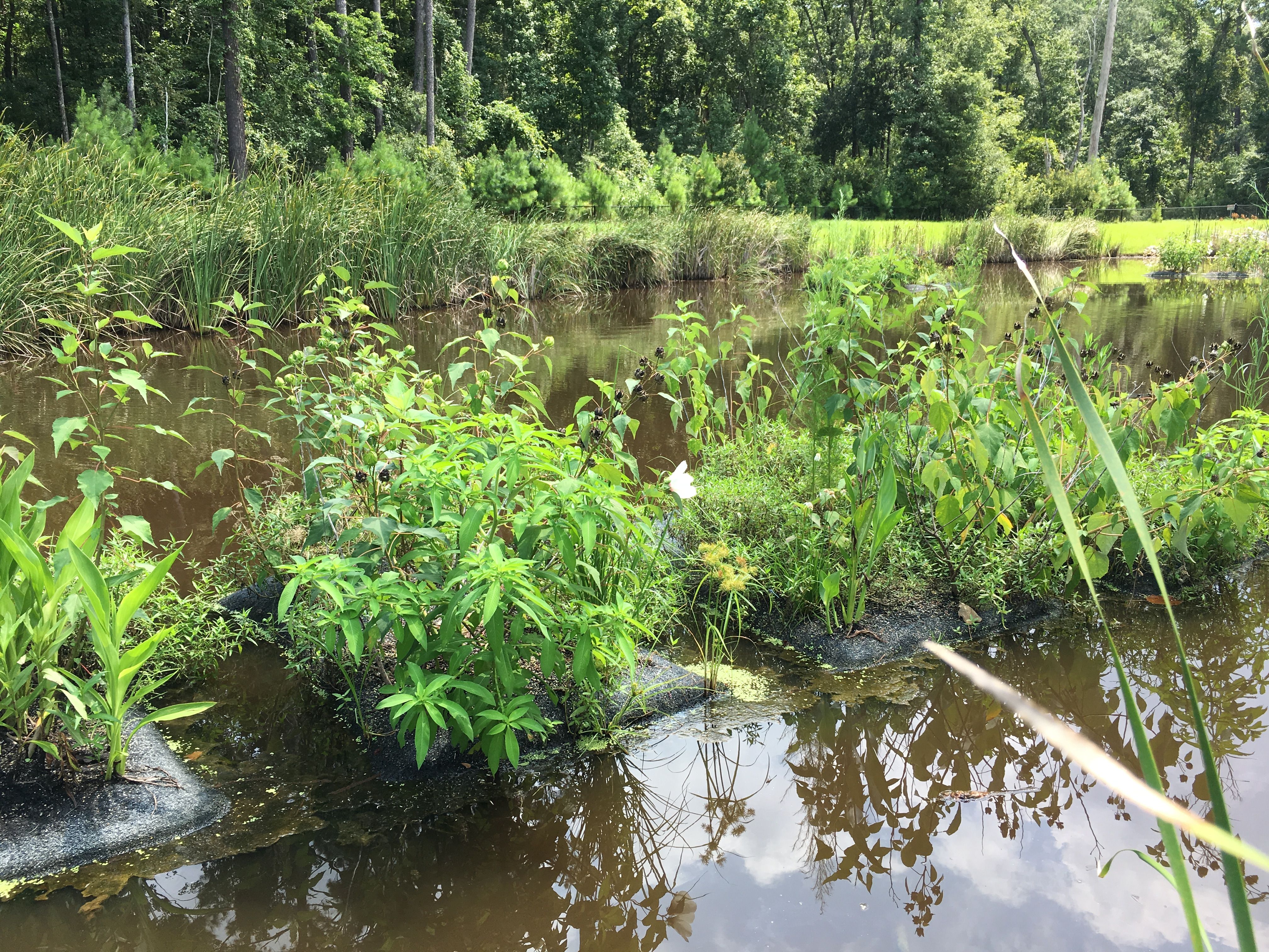 In 2017, the Town of Bluffton implemented floating wetlands utilizing native wetland plants purchased from the Spring Island Trust's Native Plant Project. Native wetland plants grow through a matrix with their roots suspended in the water and absorb excess nutrients that may be present.