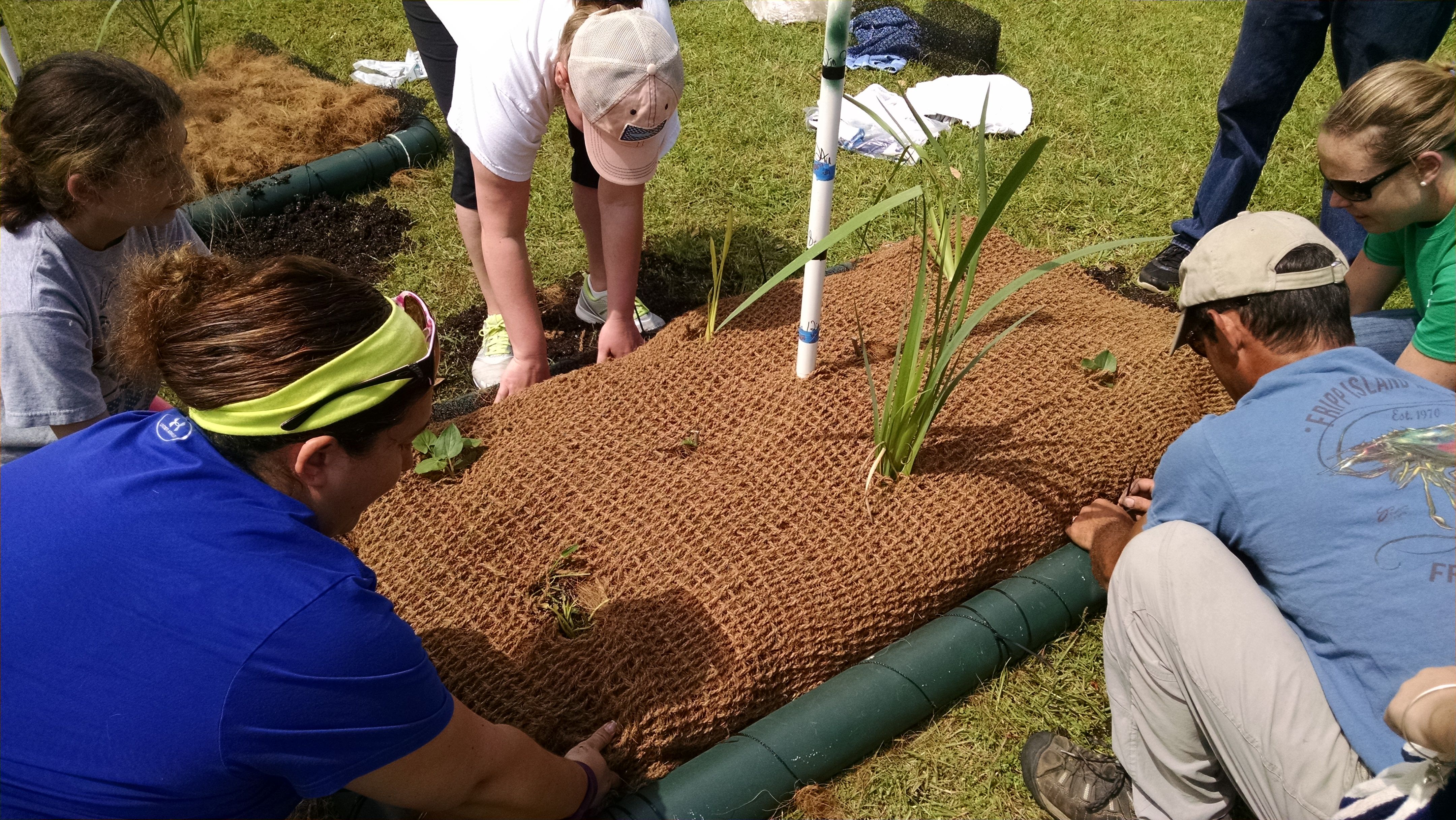 In conjunction with the Town's 2016 May River Cleanup, students and parents from MC Riley Elementary constructed two small floating wetlands utilizing native wetland plants, PVC pipe, and coir fiber. These floating wetlands were installed into a stormwater pond located on school grounds. Students learned about floating wetlands, the importance of protecting local water quality, and were able to monitor plant growth over time.